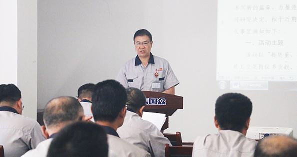 會(huì)上,公司常務(wù)副總經(jīng)理崔新平全文傳達(dá)了公司《關(guān)于開展“秋伊創(chuàng)新績(jī),啟航新征程”活動(dòng)的通知》,他在宣讀文件的同時(shí),詮釋了各條活動(dòng)項(xiàng)目的深刻內(nèi)涵。并通過列舉實(shí)例的方式,闡釋了活動(dòng)的重要意義,還點(diǎn)明了現(xiàn)實(shí)中存在的一些問題,并提出了整改要求與措施。